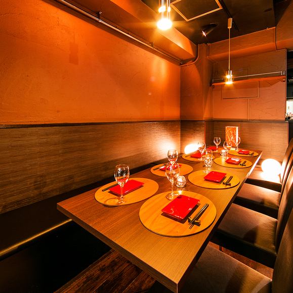 当店は全席個室を完備している居酒屋です。何名様でもご案内OK!接待やデート、女子会に最適な少人数席から、歓送迎会など大人数宴会に対応できる宴会場まで大中小さまざまなお席をご用意。間接照明が優しく灯る空間は、都会の喧騒を忘れさせてくれるリラックス空間です。当店で至福のひとときをぜひお過ごしください。