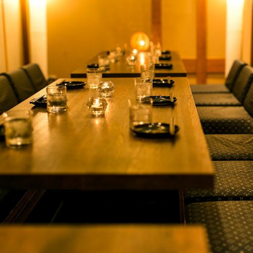 【全席個室居酒屋】シーンに合わせてご利用下さい。ほのかな灯りが優しく包み込む大人数のお客様向けのお席となります。個室では周りを気にせずお祝いやお話、お食事をお楽しみいただけます。